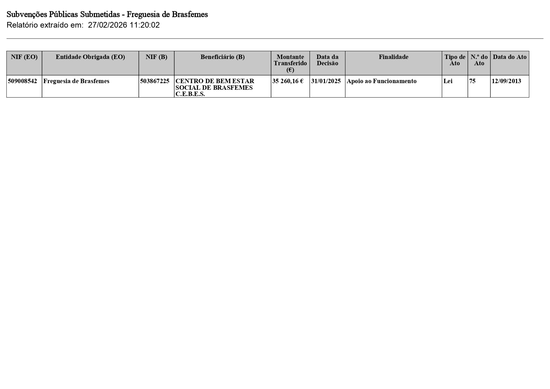 Publicitação Subvenções Públicas atribuídas pela Junta de Freguesia de Brasfemes